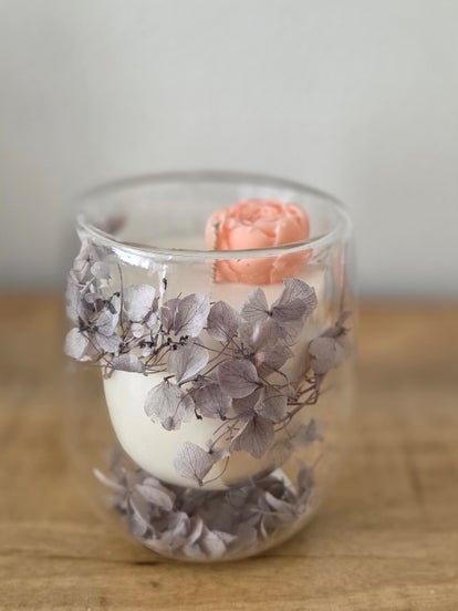 Dit schattige glazen potje is een perfecte combinatie van sfeer en stijl. In het glas zijn fijne droogbloemen verwerkt, wat zorgt voor een natuurlijke en elegante uitstraling die in elk interieur tot zijn recht komt.